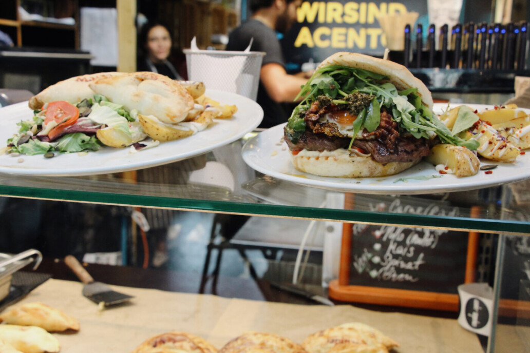 Vegetarische und mit Fleisch gefüllte Empanadas, argentinische Rindfleischsteaks mit hausgemachtem Chimichurri, Rosmarinkartoffeln und Ofengemüse, argentinische Burger und frische Salatvariationen.