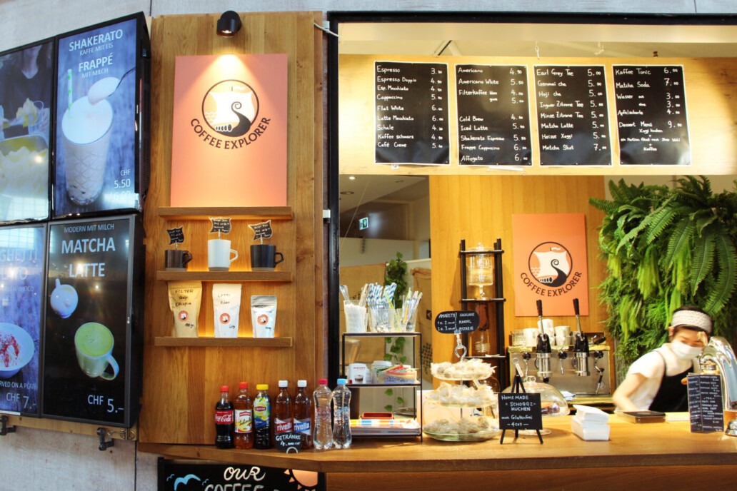 Auch Coupes und Eiskaffee wird angeboten und die grosse Kaffee-Ecke bietet von Matcha Latte über Cold Brew bis zu Affogato so einige Spezialitäten an.